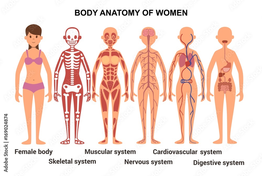 Anatomy Of The Female Body Anatomical Poster Skeletal And Muscular System Nervous And Circulatory System Human Digestive System Stock Vector Adobe Stock